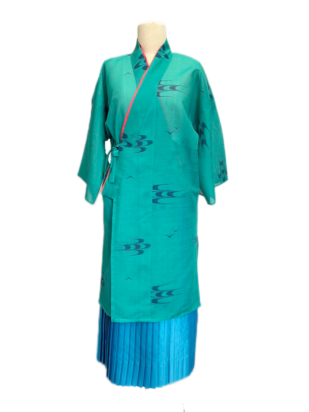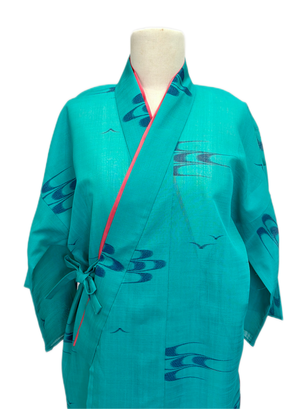 爽やかなターコイズブルー地にかすり柄が素敵です!